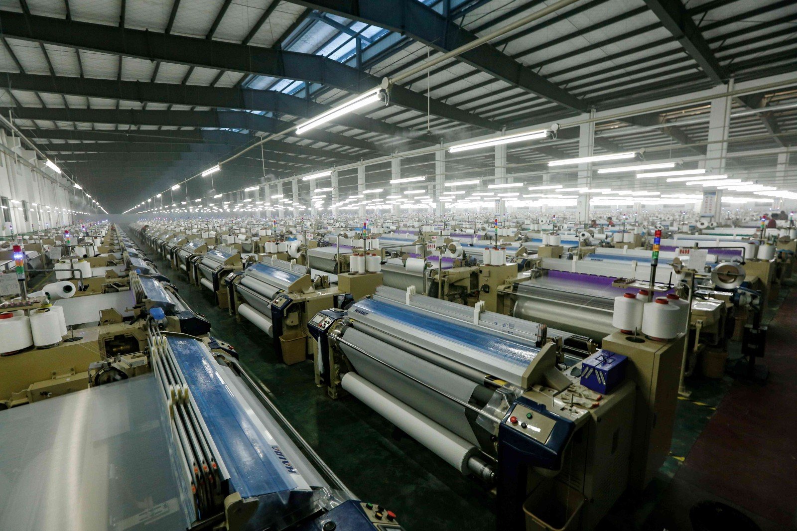 “在恒力集團(tuán)這次的項(xiàng)目中,我們共簽署了6000臺(tái)噴水織機(jī)的訂單。其中HW-8010-230型有1104臺(tái)、HW-8010-340寬幅機(jī)型816臺(tái)、HW-8010-360寬幅雙經(jīng)軸型4080臺(tái)?!焙<褭C(jī)械總經(jīng)理劉井然透露。