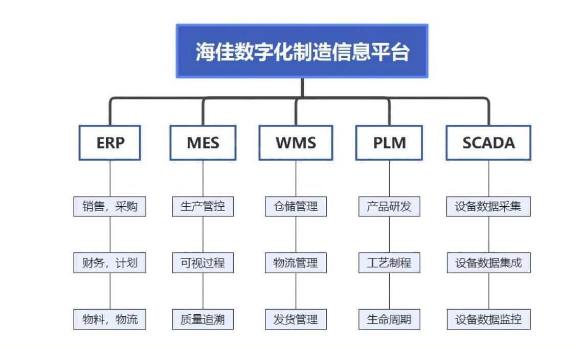 海佳以數(shù)字化生產(chǎn)流程為基礎(chǔ),制造過程集成了ERP,MES系統(tǒng),SCADA設(shè)備數(shù)據(jù)采集系統(tǒng),車間看板系統(tǒng),遠(yuǎn)程運(yùn)維等信息化系統(tǒng),實(shí)現(xiàn)了從零部件采購到織造產(chǎn)品全流程的信息化管理。