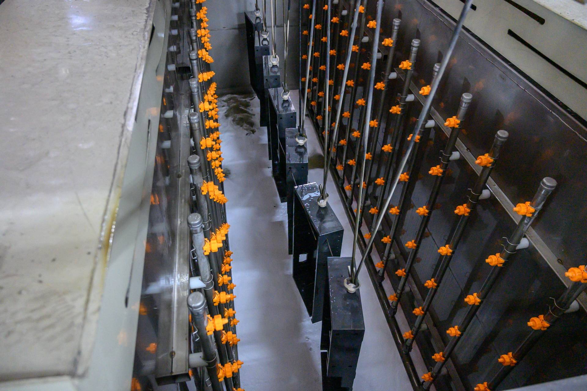 全自動(dòng)電泳生產(chǎn)線由前處理噴淋系統(tǒng)、槽邊抽風(fēng)系統(tǒng)、硅烷處理工藝系統(tǒng)、電泳工藝系統(tǒng)、