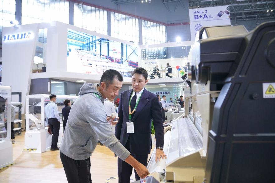海佳噴氣織機也進(jìn)行了全面創(chuàng)新升級,本次展出的HA-9030N系列噴氣織機長期運轉(zhuǎn)更加可靠性,高速運轉(zhuǎn)同時更加節(jié)能,能滿足各種高品質(zhì)織造,品種適應(yīng)性更強,現(xiàn)場吸引海內(nèi)外諸多客戶。
